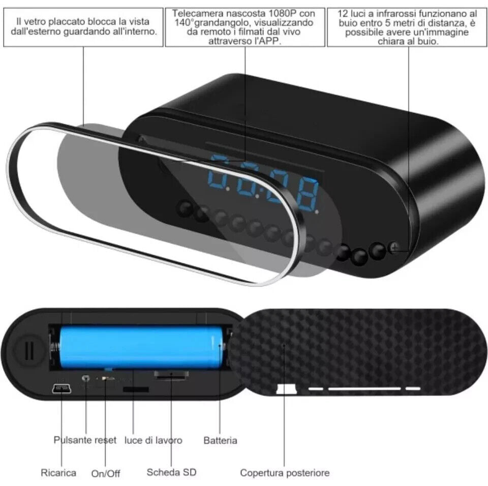 Sveglia Orologio Digitale Wi-Fi Z10 – Telecamera Spia HD con Audio e Visione Notturna